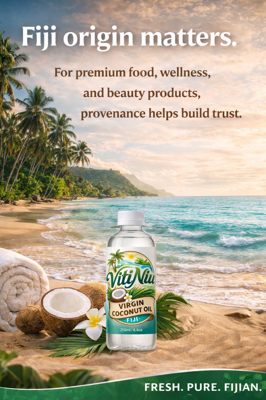 For premium food, wellness, and beauty products, provenance helps build trust. VitiNiu is positioned around a simple promise: coconut oil with a clear origin, clean presentation, and a direct path from buyer enquiry to commercial response.